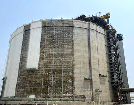 北燃天津南港LNG應(yīng)急儲(chǔ)備項(xiàng)目的薄膜型LNG儲(chǔ)罐是目前全球最大的陸上LNG薄膜罐,是為北京市提供安保用氣、加速京津冀一體化的重點(diǎn)項(xiàng)目,我司承攬此項(xiàng)目二、三階段共計(jì)六臺(tái)薄膜罐的防潮層施工工作